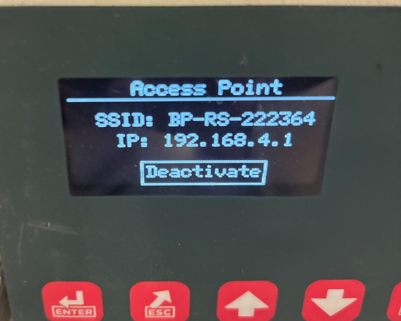 3. Once activated, the AP SSID will be shown with the webpage IP. On a laptop or cell phone, open the available WiFi networks and find the one with matching the SSID. If there is a password, use: Bestpack@1425